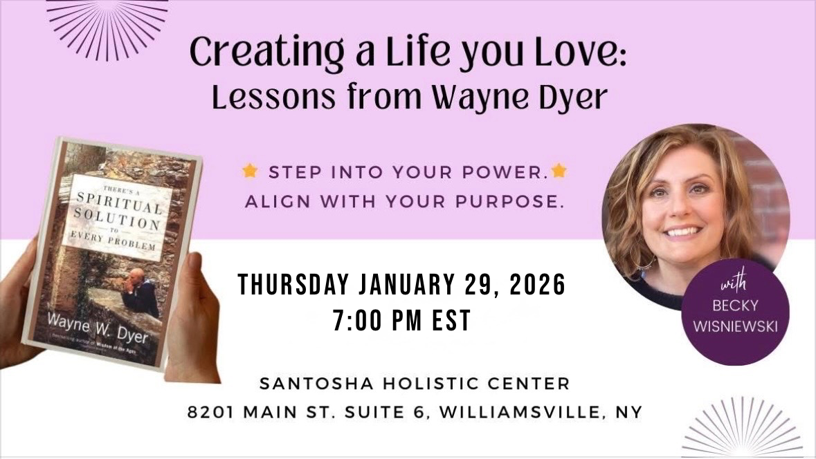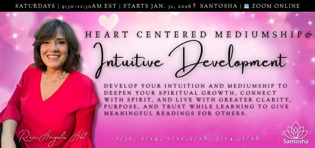 Angie is the heart and soul behind Santosha located in Williamsville. where she offers both in-person and online classes in intuitive development, mediumship, and meditation.