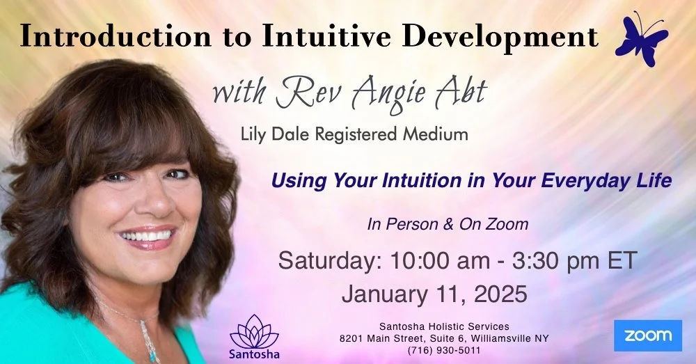 We are all born with a connection to our intuition. Join Registered Lily Dale Medium, Angie Abt and learn how to reconnect with what is already inside of us. We will begin our day with a meditation because meditation is always is the best way to connect to our intuition. This will be folllowed by lessons that will give you the basics in intuitive development.